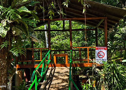 La reserva del lodge se encuentra a unos 2 km del lodge. En la reserva hay una serie de senderos que le llevarán a través de un bosque tropical de gran calidad y plantaciones de reforestación de especies autóctonas. También hay una laguna separada para explorar. Hay terrazas cubiertas y senderos para observar aves en la laguna. El bosque alberga especies difíciles de encontrar, como el hormiguero oscuro, mientras que la laguna es el hogar de especies raras, como la garza tigre rufa.